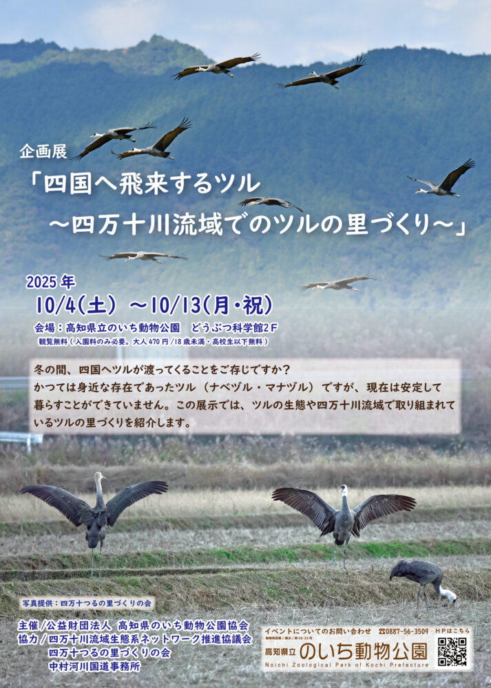 【のいち動物公園】企画展「四国へ飛来するツル ~四万十川流域でのツルの里づくり~」