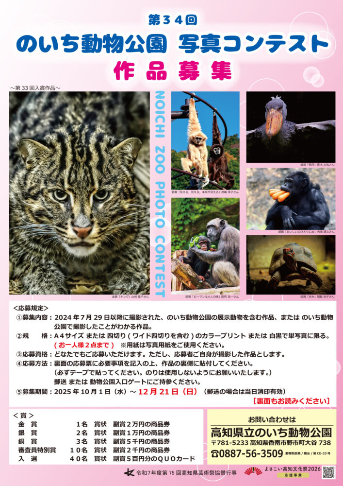 第34回のいち動物公園 写真コンテスト作品募集