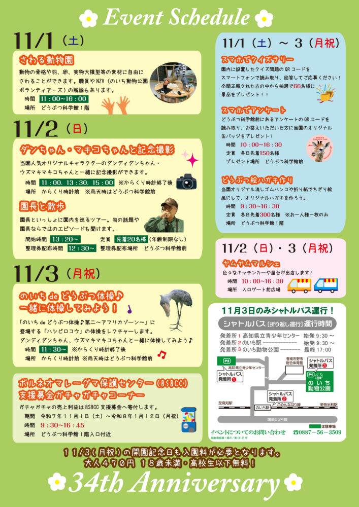 ※各イベントの開催時間はチラシや公式HPをご覧ください高知県立のいち動物公園