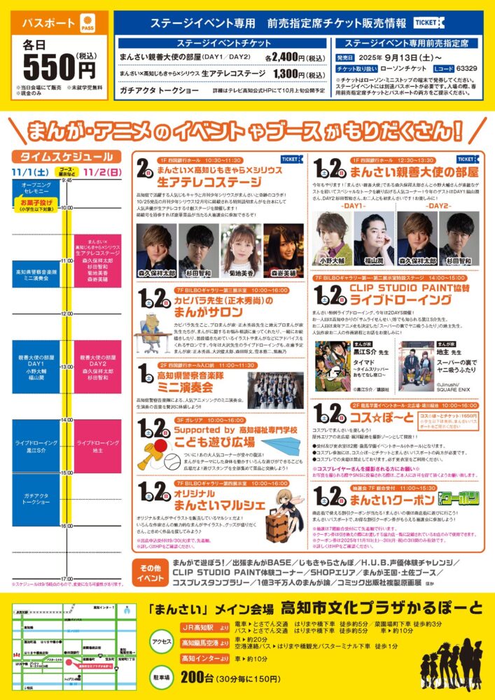 まんさい恒例イベントとなっているライブドローイングの他に、高知県警察音楽隊による人気アニメソングのミニ講演会やまんさいマルシェ、コスプレでまんさいを楽しんだりと充実したプログラムの2日間でになっています。