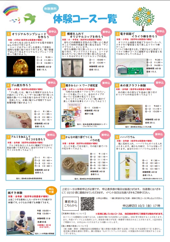 「ものづくりフェスタ2025」ものづくり体験のお申し込みはこちらをクリック。