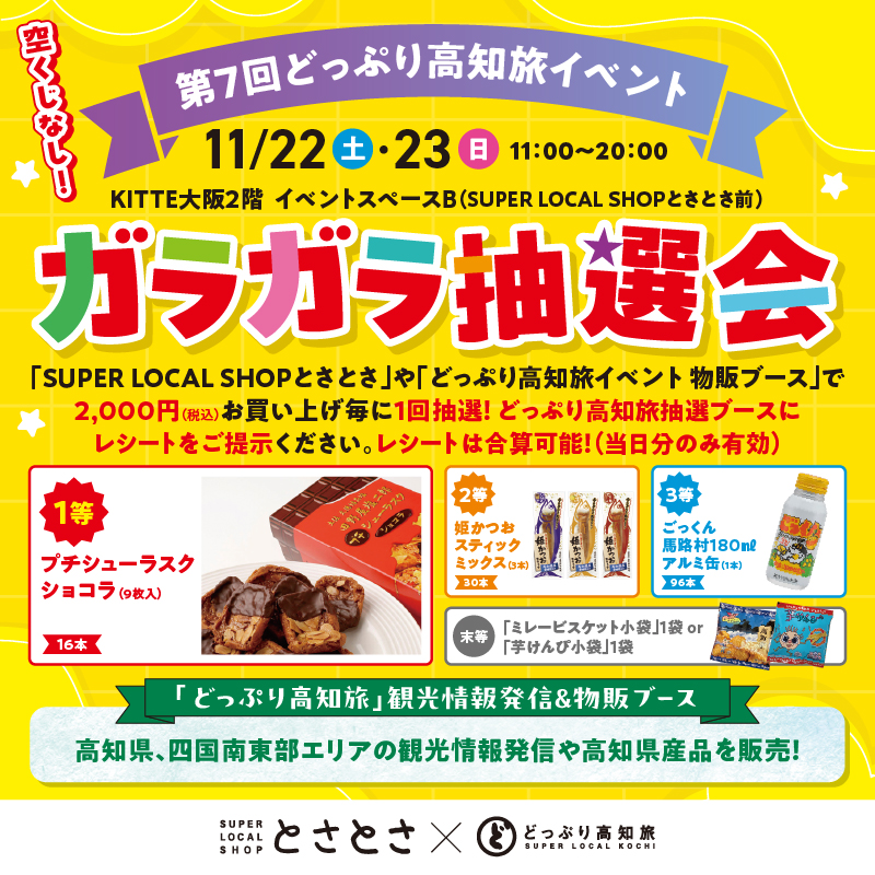 11月22日(土)・23日(日)の2日間、KITTE大阪2階イベントスペースB(SUPPER LOCAL SHOPとさとさ前)にて第7回どっぷり高知旅イベントを開催します。