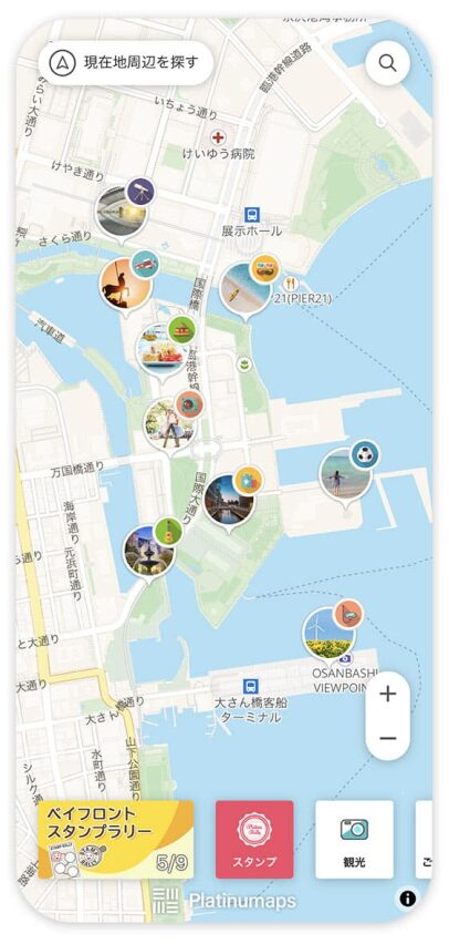 3.画面上のマップで現在地やスタンプラリーポイントを確認!